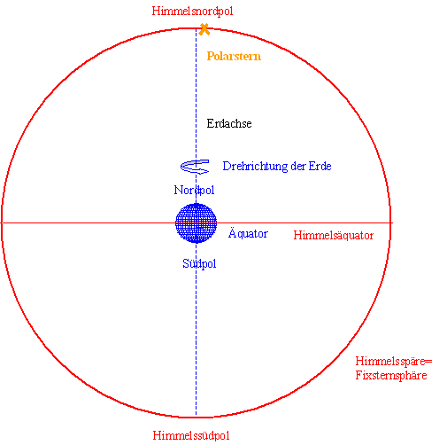 Richtungen bis zur Fixsternsphäre, so gelangt man zum Himmelsnordpol und zum