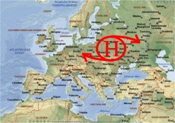 Beispiel: Des winterliche Hoch über Sibirien Die Luft über Sibirien kühlt im Winter stark ab und sinkt zu Boden. Regel: Fallender Luftdruck deutet auf eine Wetter-Verschlechterung hin. Das Wetter in Mitteleuropa ist dadurch gekennzeichnet, dass vom Atlantik her immer wieder Tiefdruckgebiete eintreffen. Die Luft strömt im Gegenuhrzeigersinn in das Tiefdruckgebiet hinein.