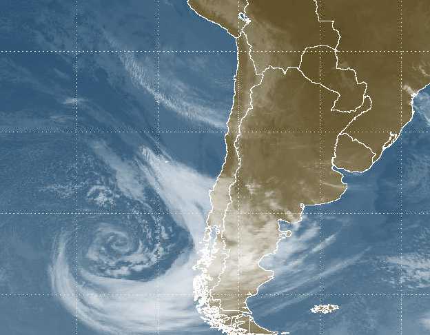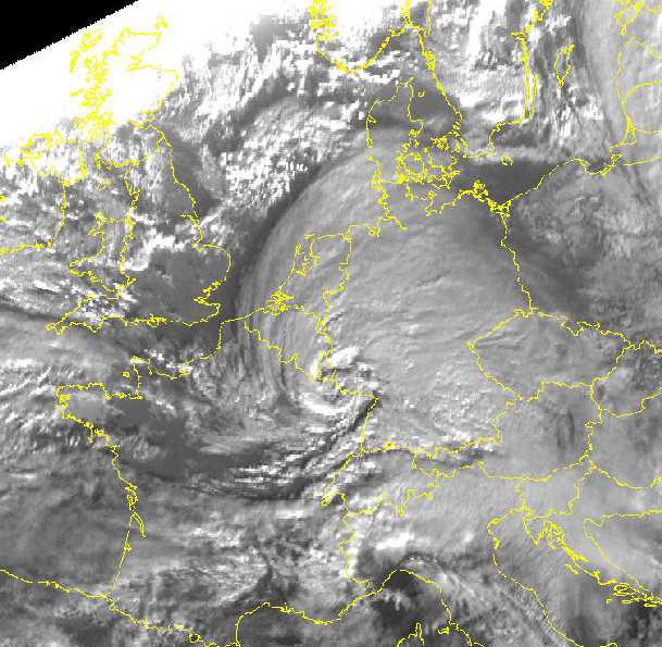 Auf der Aufnahme liegt das Zentrum des Tiefs gerade über dem