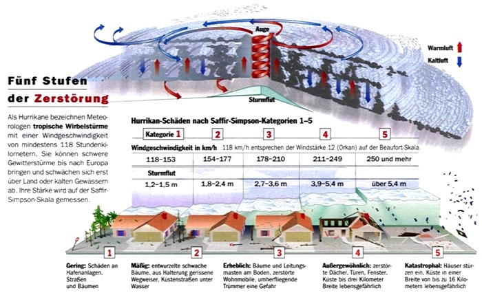 Diese Grafik aus FOCUS veranschaulicht die bei Hurrikans auftretenden Zerstörungen