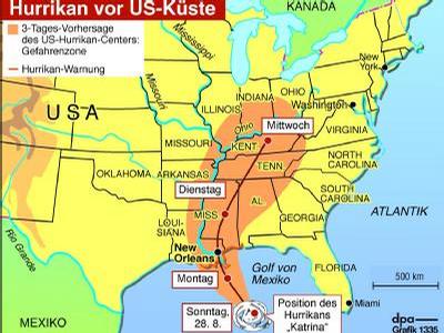 Katrina wurde in die Kategorie 4 eingestuft. Die Flutwellen dieses Hurrikans verursachten in New Orleans Dammbrüche, worauf weite Teile der Stadt überflutet wurden. | Wilma war zeitweise der stärkste je beobachtete Hurrikan.