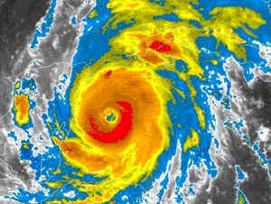 Kategorie 5: Windgeschwindigkeiten von mindestens 250 Kilometer pro Stunde. Die Zerstörungen sind katastrophal, Es gibt schwere Überschwemmungen, teilweise werden Häuser fortgeblasen. In Küstengebieten sind wegen Lebensgefahr manchmal große Evakuierungsaktionen erforderlich.