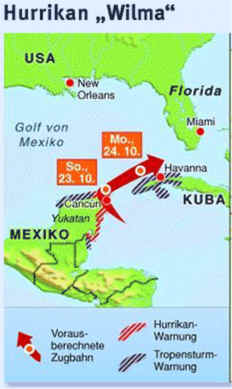 km/h. Über Land verliert ein Hurrikan immer an Wucht. Wilma wurde über