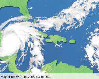 das offene Meer nahmen die Windgeschwindigkeiten wieder zu. Anmerkung: Wilma zog über Florida hinweg und überquerte dann den Atlantik. Am 1. November erreichte der ehemalige Hurrikan Europa als normales Tiefdruckgebiet. |