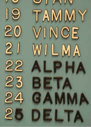 Im Jahr 2005 gab es so viele Hurrikans, das das Alphabet für die übliche Benennung nicht ausreichte. Man musste auf das griechische Alphabet zurück greifen. |